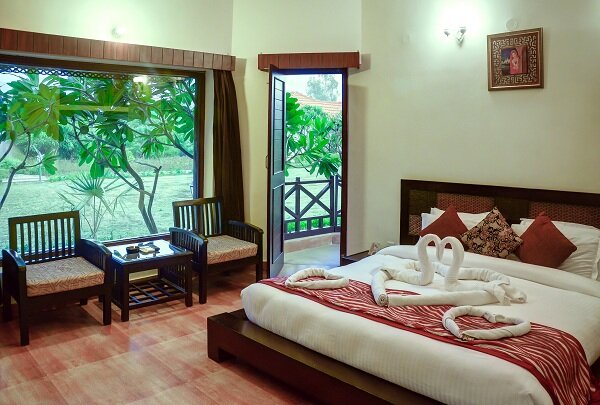 Our restaurant with trained chefs ensure high standard of taste and hygeine. During the day you can enjoy our library, relax in swimming pool or take a soothing spa experience. Evening sitting on independednt porches gives opportunity for seeing the beautiful lit sky with stars. Luxurious Rooms Nature Walks Soothing Spa Safaris Swimming Pool Outdoor Activities